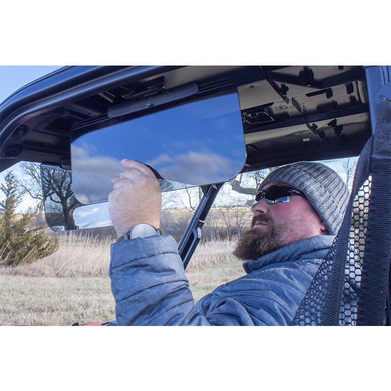 Works on most Polaris® and Can-Am® UTVs or any vehicle with a flat metal frame around the windshield